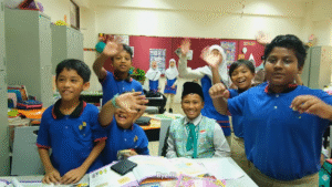 Selain belajar mereka juga dapat bermain dengan teman baru dari berbagaimacam suku dan negara mereka yaitu china, india, singapura arab , dll.  Mereka saling bertukar kisah dan tertawa Bersama di sela pembelajaran yang mungkin menjenuhkan untuk mereka.